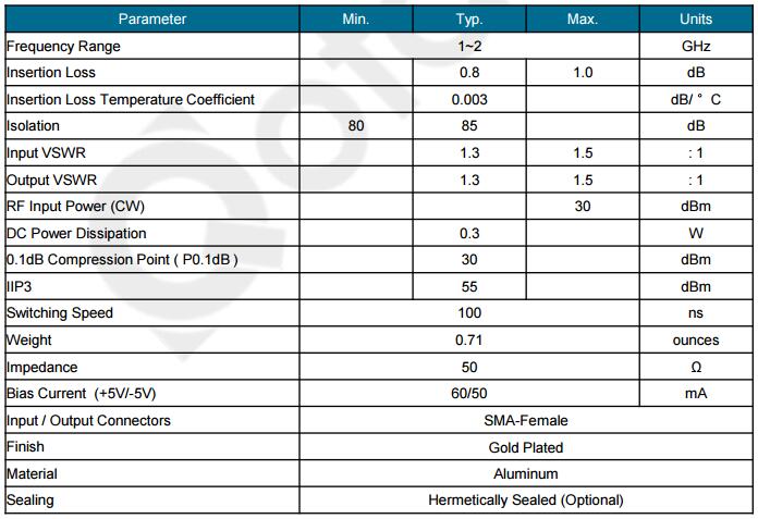 Absorptive Coaxial SP2T Switch 1 – 2GHz DBSA0201000200A