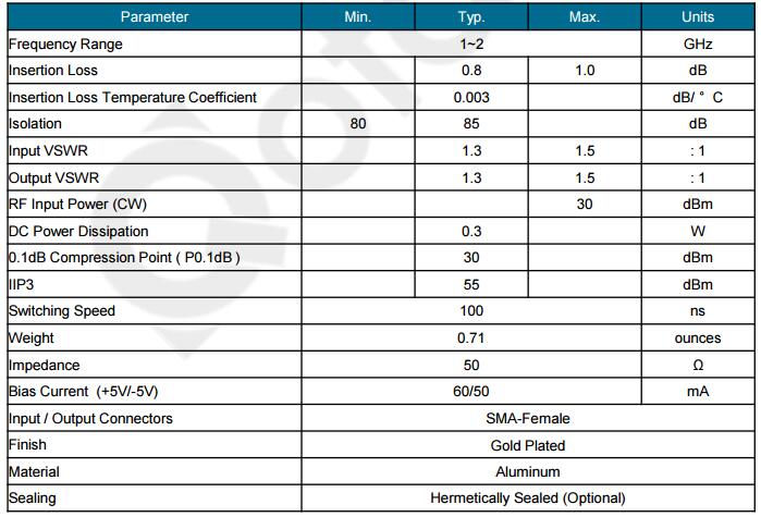 Features Ultra Wide Band Operation 0.5-43.5GHz TTL compatible driver included Fast Switching Speed Low Insertion Loss and High Isolation Customization available upon request
