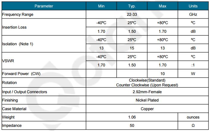 Ultra Wide Band Coaxial Circulator 22-33GHz DBCL1522003300A