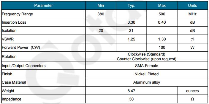 Ultra Wide Band Coaxial Circulator 380-500MHz DBCL2000380050A